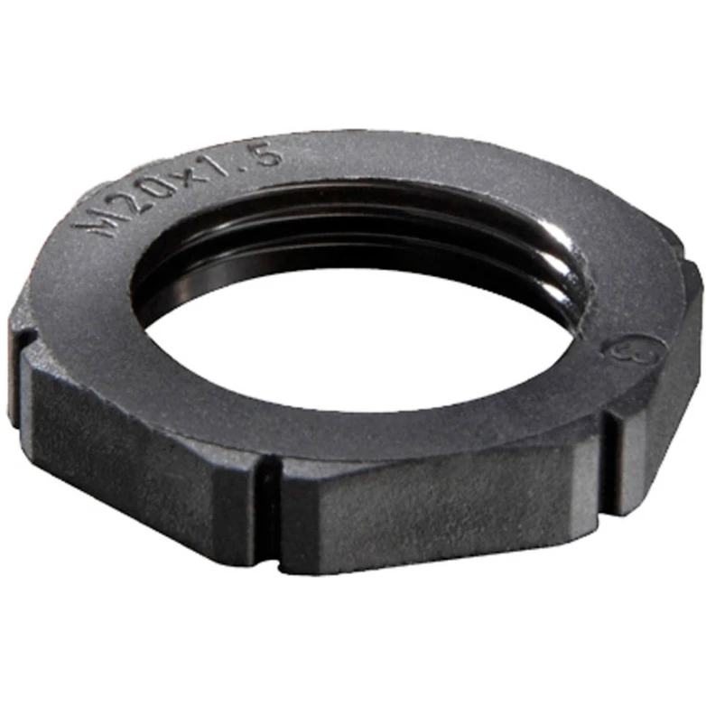 Technical Specifications Technical Specifications Locknut for cable gland Nominal thread size metric/PG 63 Pitch thread 1.5 mm Glass fibre reinforced Yes With grounding connection No Shock resistant Yes Halogen free Yes