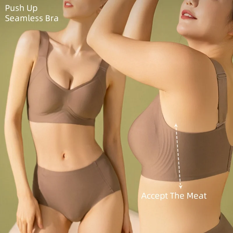 Women Intimates Full Coverage One-Piece Plus Size Push up Ice Silk Adjustment Gathering Sport Ladies Jelly Underwear Yoga BH Pack of 3