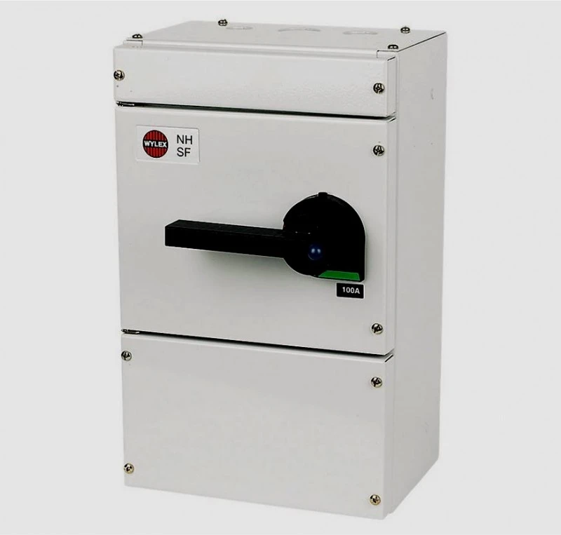 · · Supplied with 100A fuses. · · Painted RAL 7035 steel enclosure 425mmH x 263mmW x 188mmD. Front door reversible, opening to 180° · · Operating handle can be padlocked. · · Accommodates cable spreading room up to 70mm² 4 core. · · Spreading room is allowed for at one end only. To fit a 4 core cable at both ends an additional cable spreader (NHCSB2) is required.