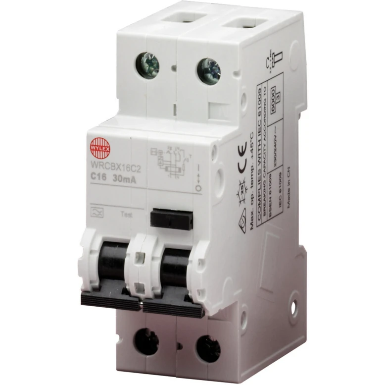 · · Two module, RCBO (wire in wire out) · · 16A C curve (MCB), 30mA Type A (RCD) · · Single pole with switched neutral