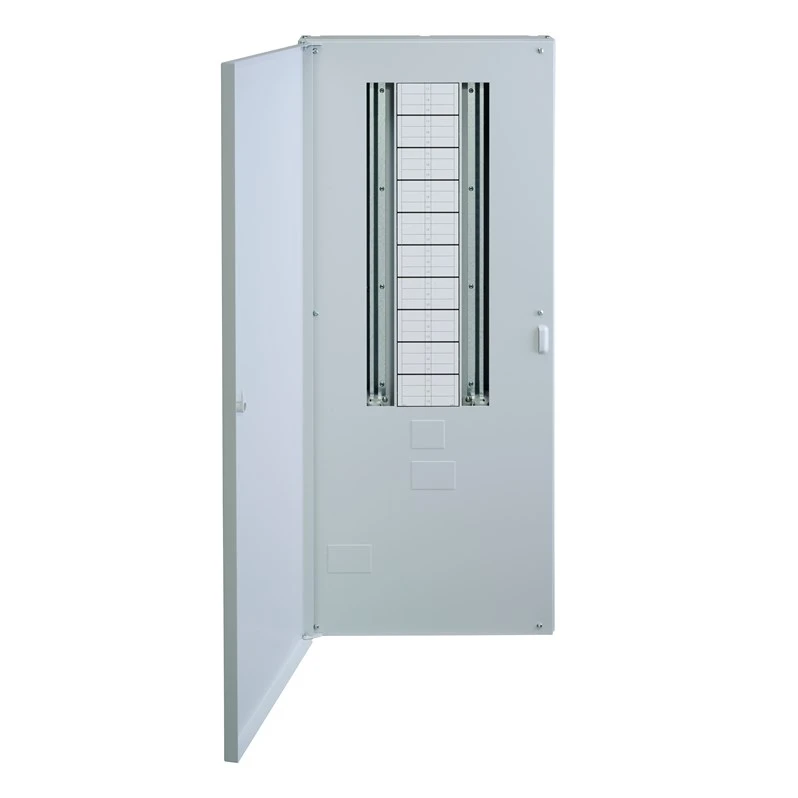 Technical Specifications Technical Specifications Small distribution board equipped Height 1000 mm Width 430 mm Depth 155 mm Main switch rated current 125 A Number of outgoing ways 20 Extension possible Yes Number of phases 3 Lockable Yes With transparent cover No