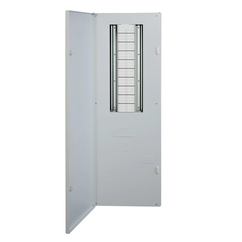 Technical Specifications Technical Specifications Small distribution board equipped Depth 155 mm Width 430 mm Height 1200 mm Main switch rated current 250 A Number of outgoing ways 20 Number of phases 3 With transparent cover No Extension possible Yes Lockable Yes