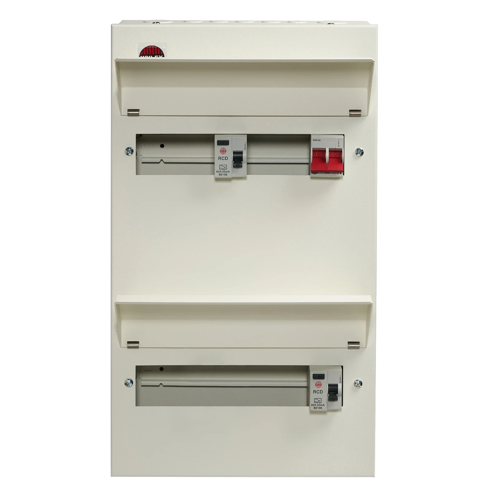NM All Metal Consumer Units. Duplex High Integrity Metal Cased Units 80A Type A RCDs. · · · Current rating 80A · · No. of ways 20 · · Type A · · Sensitivity 30mA