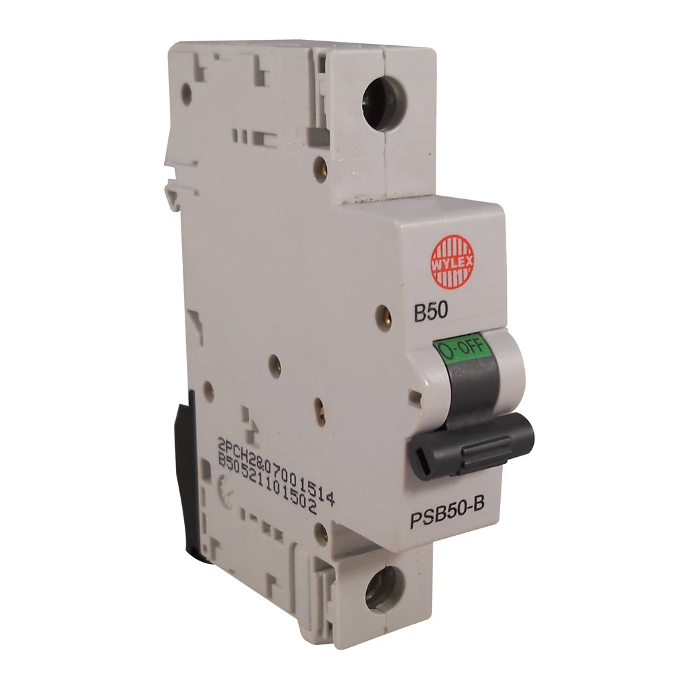 Technical Specifications Technical Specifications Miniature circuit breaker (MCB) Number of poles (total) 1 Rated insulation voltage Ui 400 V Rated short-circuit breaking capacity Icn EN 60898 at 230 V 10 kA Rated short-circuit breaking capacity Icn EN 60898 at 400 V 10 kA Current limiting class 3 Over voltage category 3 Rated current 50 A Ambient temperature during operating -5 – 40 °C Connectable conductor cross section multi-wired 0.75 – 25 mm² Frequency 50 – 50 Hz Rated impulse-withstand voltage (Uimp) 4 kV Number of protected poles 1 Rated voltage 230 V Width in number of modular spacings 1 Additional equipment possible No Concurrently switching N-neutral No Flush-mounted installation No · Technical Data Sheet – Click to Download · Technical Data Sheet – Click to Download