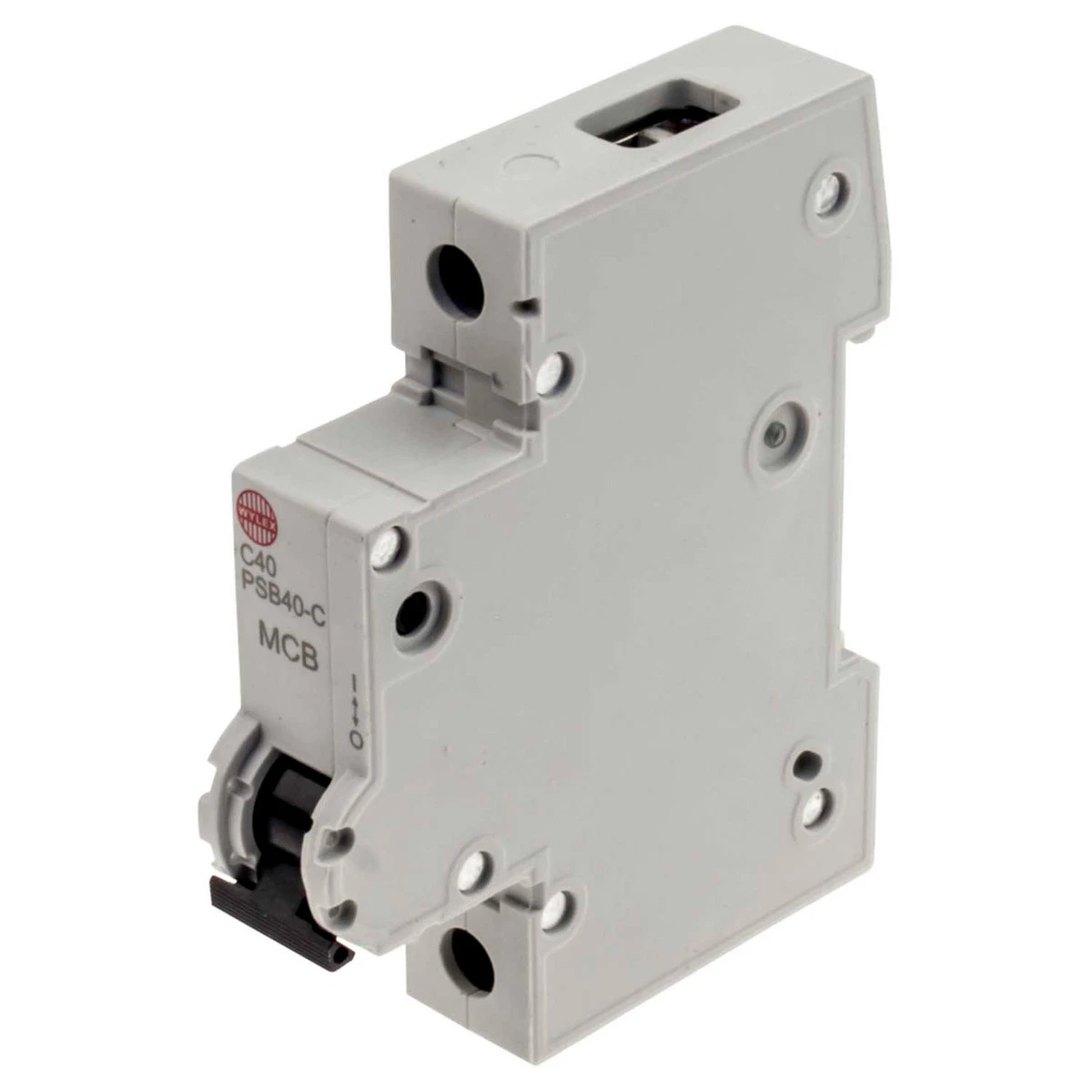 Technical Specifications Technical Specifications Miniature circuit breaker (MCB) Rated voltage 230 V Width in number of modular spacings 1 Rated insulation voltage Ui 400 V Rated current 40 A Rated short-circuit breaking capacity Icn EN 60898 at 230 V 10 kA Current limiting class 3 Rated short-circuit breaking capacity Icn EN 60898 at 400 V 10 kA Number of poles (total) 1 Number of protected poles 1 Over voltage category 3 Rated impulse-withstand voltage (Uimp) 4 kV Frequency 50 – 50 Hz Connectable conductor cross section multi-wired 0.75 – 25 mm² Ambient temperature during operating -5 – 40 °C Flush-mounted installation No Additional equipment possible No Concurrently switching N-neutral No · Technical Data Sheet – Click to Download · Technical Data Sheet – Click to Download