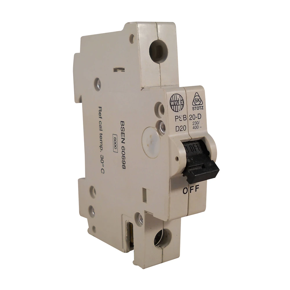 Technical Specifications Technical Specifications Miniature circuit breaker (MCB) Rated current 20 A Rated insulation voltage Ui 400 V Rated voltage 230 V Tripping characteristic (type/curve) D Rated short-circuit breaking capacity Icn EN 60898 at 400 V 10 kA Over voltage category 3 Current limiting class 3 Number of poles (total) 1 Number of protected poles 1 Rated short-circuit breaking capacity Icn EN 60898 at 230 V 10 kA Rated impulse-withstand voltage (Uimp) 4 kV Width in number of modular spacings 1 Frequency 50 – 50 Hz Connectable conductor cross section multi-wired 0.75 – 25 mm² Ambient temperature during operating -5 – 40 °C Additional equipment possible No Concurrently switching N-neutral No Flush-mounted installation No · Technical Data Sheet – Click to Download · Technical Data Sheet – Click to Download