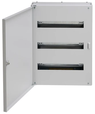 · · Accessory for NH Distribution Boards · · Suitable for stand-alone use or add-on above surface ‘Type B’ distribution board. · · Each row will accommodate 18x 18mm module wide DIN Rail mounted devices · · Main Neutral and Earth Bars included, along with provision for additional ‘Mini’ Neutral and Earth bars · · 54 module capacity