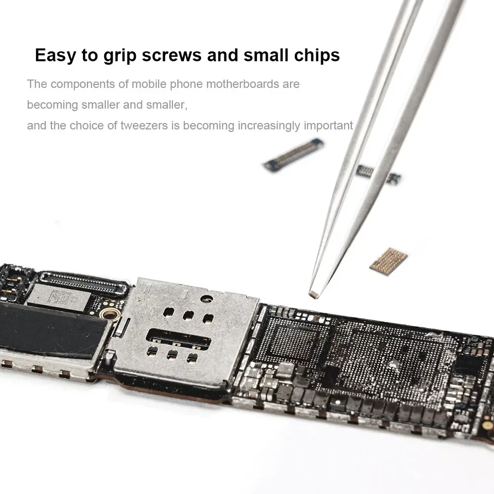 YCS AK-00 High Precision Hand-Polished Ultra-Pointed Tweezers Mobile Phone Motherboard IC Chip Electronic Repair DIY Tweezers Features: Repairer AK-00 Precision Pointed Tweezers pointed tips accurately grab tiny parts, easily pick up cell phone screws Seamless fit, solid clamping, long and thin tip, tightly clamped flying wires, screws, and chips Ergonomic design, more comfortable to hold, no need for extra pusher assistance Package includes: 1 x Tweezers Packaging & Shipping