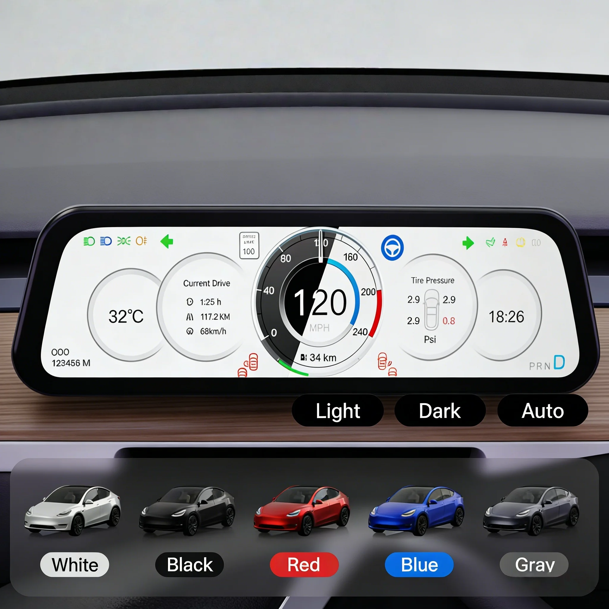 Yian F05 Digital Dashboard Heads up for Tesla Model 3 Y Display Carplay Android Auto 9.66 Inch IPS Screen HUD Power Speed