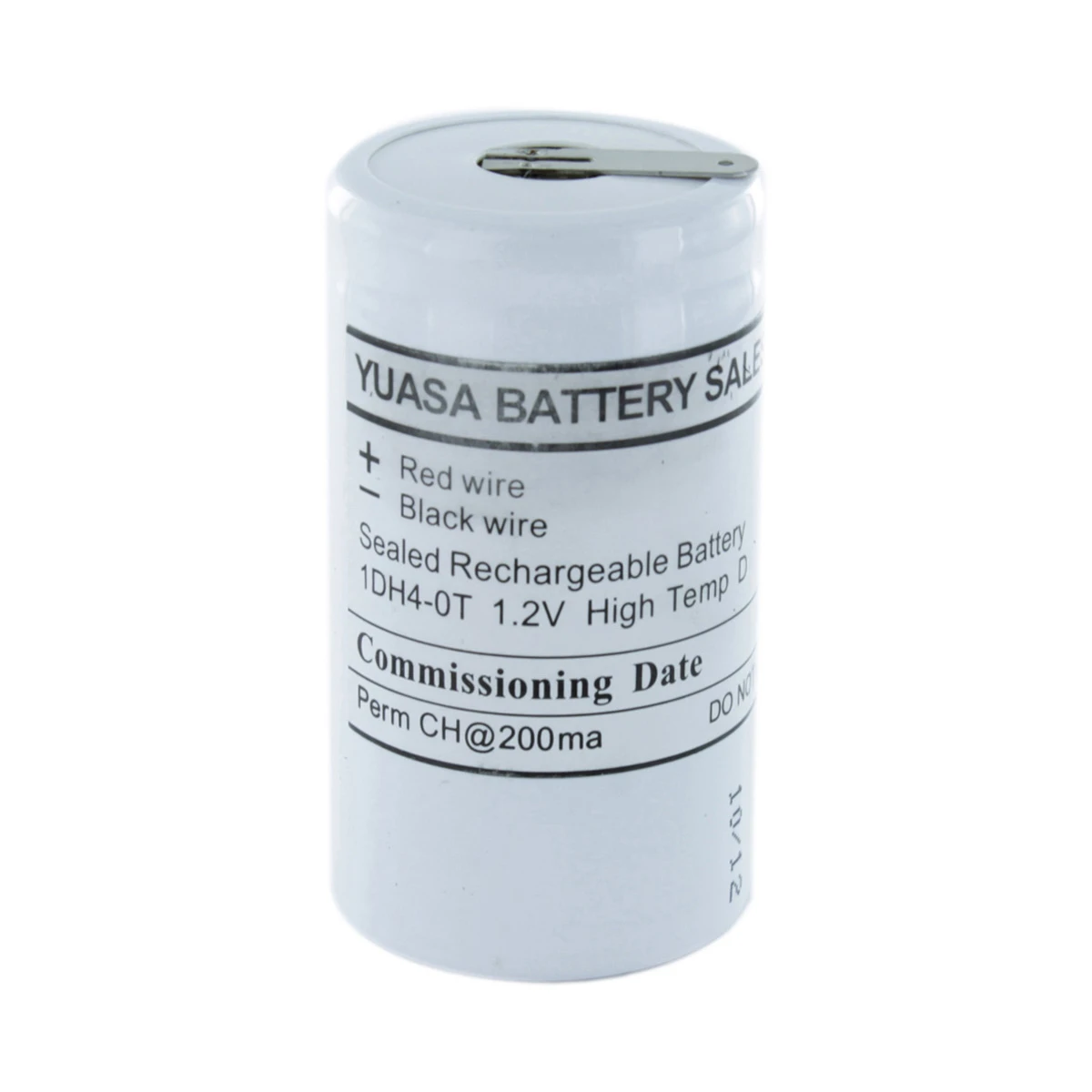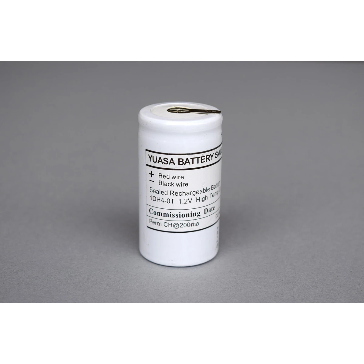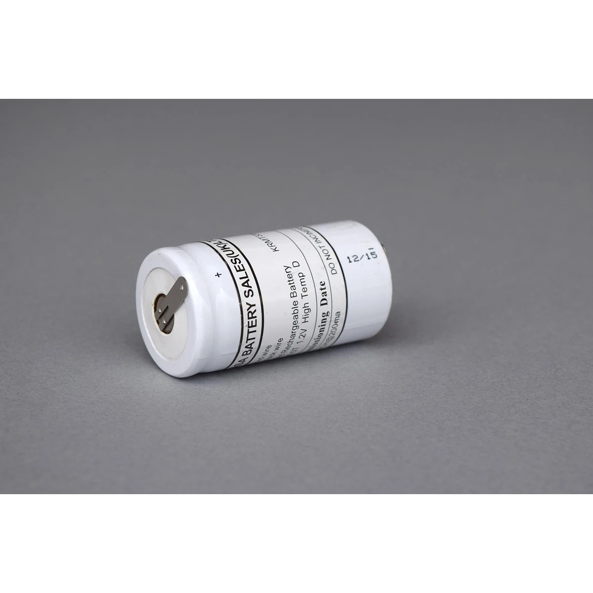This nickel-cadmium rechargeable battery is typically used with high-temperature emergency lighting, offers a 4Ah capacity and electrical contact solder tags. · · · Ni-Cd Rechargeable · · 1.2 V, 4Ah · · 4.7 mm solder tags · · Size: D · · Discharge Range -20 to 56 °C · · 4 Year life duration at 40 °C · · Weight: 126g