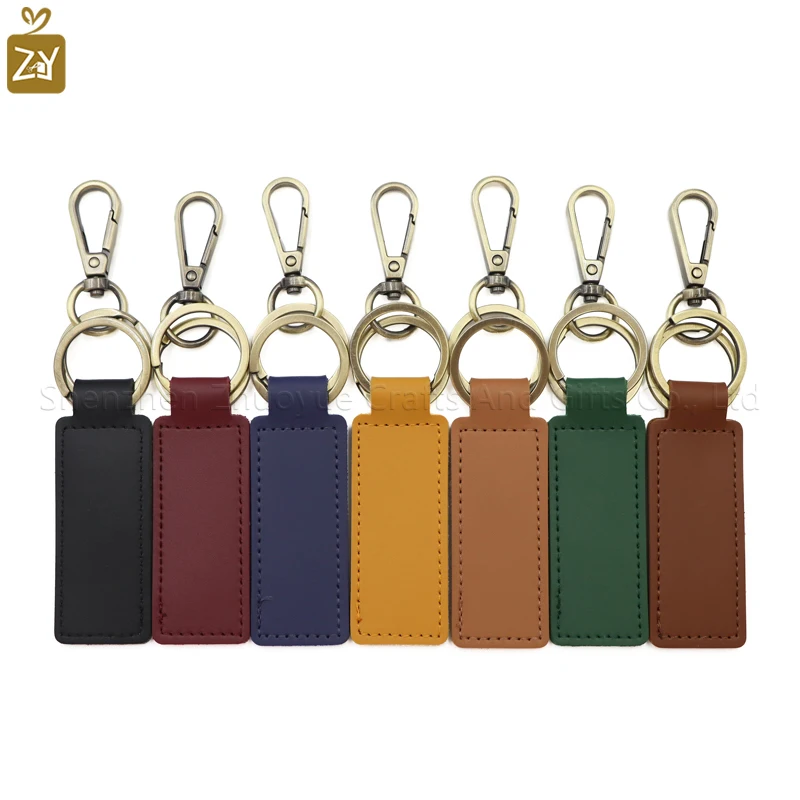 YY Stocked Multi-colors PU Leather Keychain Keyring Key Holder Metal Ring Keychain Gifts Car Keychain Pack of 2