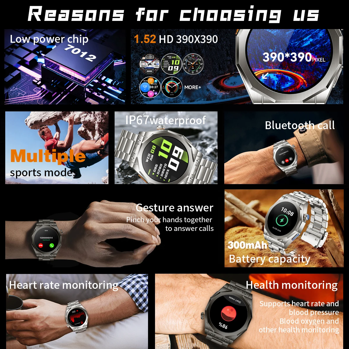 Z18 Max Smart Watch Amoled HD 1.52 Inch Large Screen Gesture Answer BT Call Health Monitoring Mini Games Multiple Sports Mode