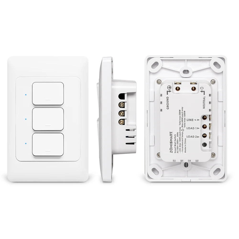 Zemismart Zigbee 3.0 Push Light Switch SmartThings Homekit Control Light Switch US AU Standard 1 2 3 Gang Wall Light Switches Pack of 2