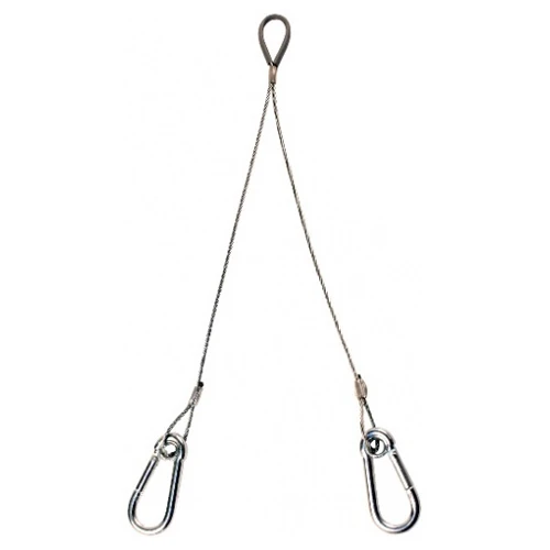 Zip-Clip Try-Lock Eyelet Carabiner Suspension System for 300-400mm spans, designed to suspend services from a single point suspension. Works in conjunction with standard Zip-Clip suspensions to support from a variety of different base materials. The range consists of two pre-determined lengths of wire with snap gate carabiners forming the termination points. Suitable for suspending containment and bracketry cable basket, cable tray, channel supports, chilled beams, radiant heat panels and plenum boxes. 5 x 50 BZP carabiner hook. Eyelets in carabiner prevent accidental un-hooking of carabiner from wire. High tensile galvanized wire 1960 N/mm² grade 7 x 7 construction. Reduces the use of studding and channel. · · · Legs should not exceed 60° · · One fixing point per drop · · Self levelling, allows for side loading · · Height can be adjusted at basket and not at fixing · · PVC protection sleeve preventing wire on wire friction